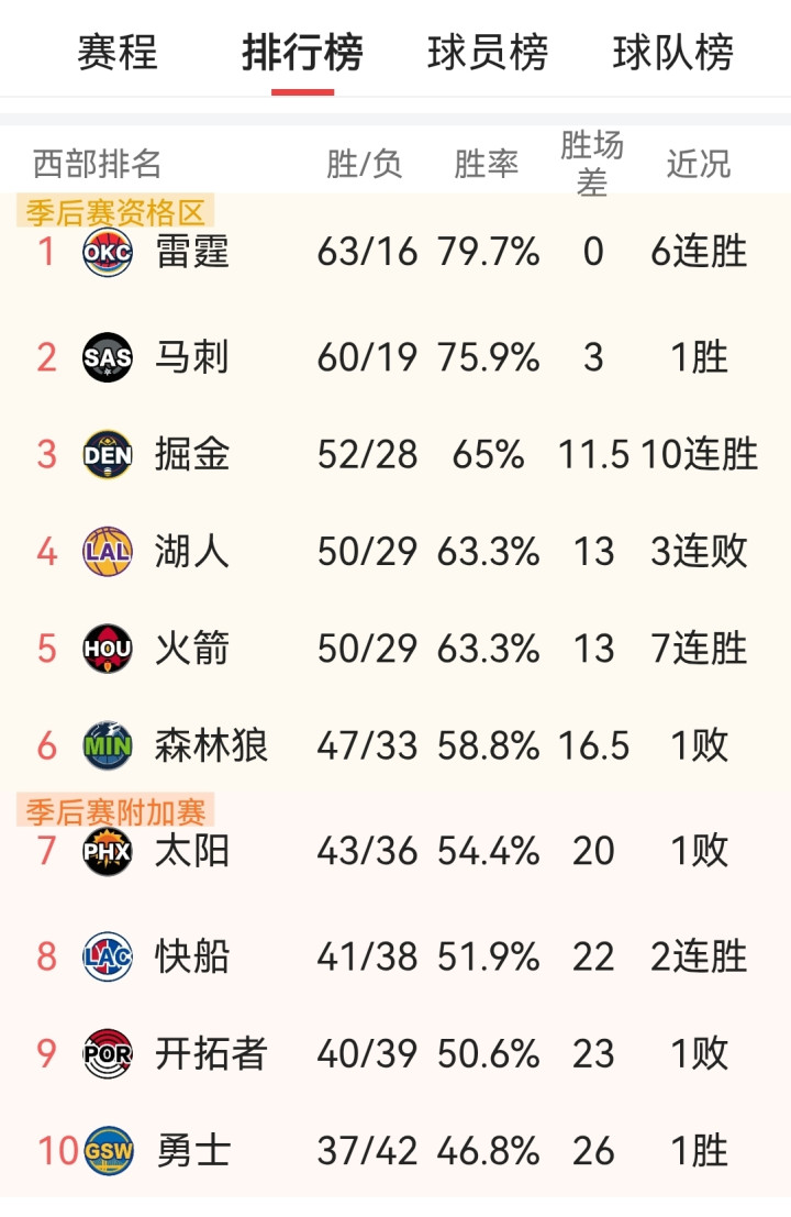 西部常规赛的悬念所剩无几,各支球队的排名与对阵基本确定,季后赛的激烈对抗即将拉开帷幕。