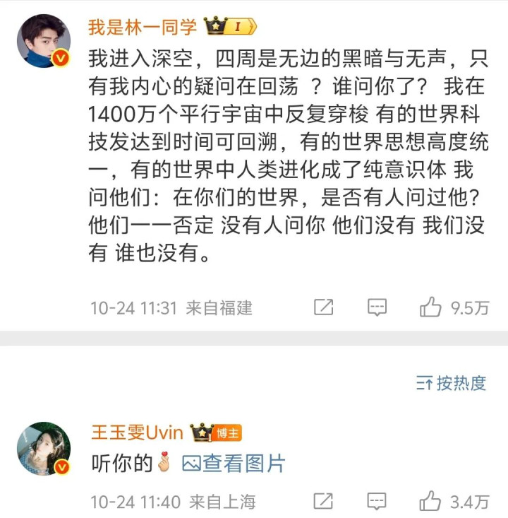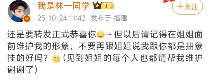 更好笑的是,林一在评论区里面写了一段非常有破碎感的文字,看得出来是羡慕是嫉妒,也是好朋友之间“互抢”刘亦菲的爱,这俩人的反应真的太有趣了,只能说刘亦菲的魅力实在是太强大了。