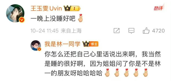 更好玩的是,林一还特意转发了王玉雯的这条内容,还要王玉雯在刘亦菲面前维护自己的形象,结果王玉雯直接回了个“一晚上没睡好吧”,哈哈哈这俩人真的太有趣了,直接当着大家的面争起了刘亦菲的爱。