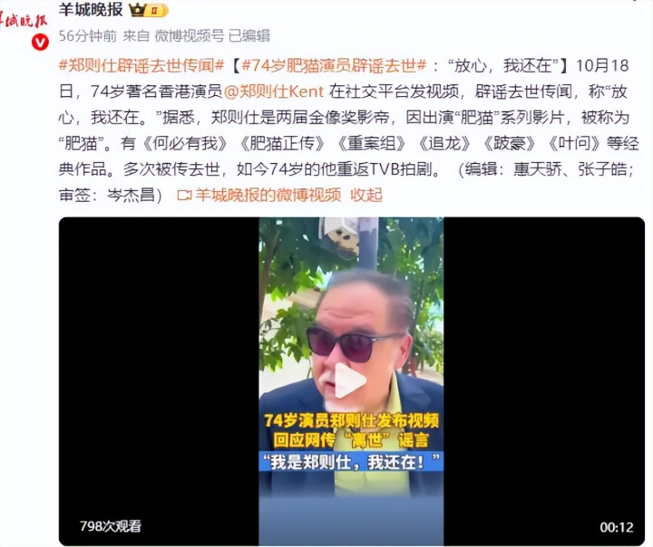 说到郑则仕,就不得不提那些年传得沸沸扬扬的“去世”谣言。