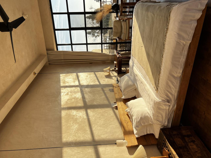 在这里,你可以体验原汁原味的田园生活。房间内的构造不同于寻常,磨平了墙体的棱角,流畅的线条,镂空的拱形门窗,米白的色调,满满的异域风情,让客人在房间内也能拍出美美的照片。
