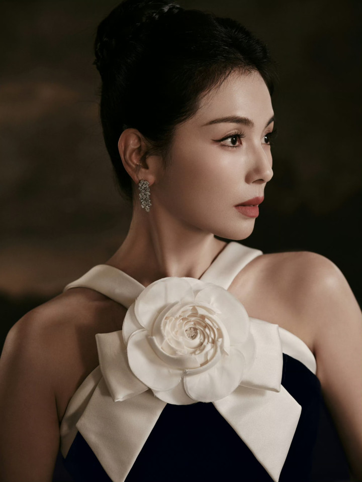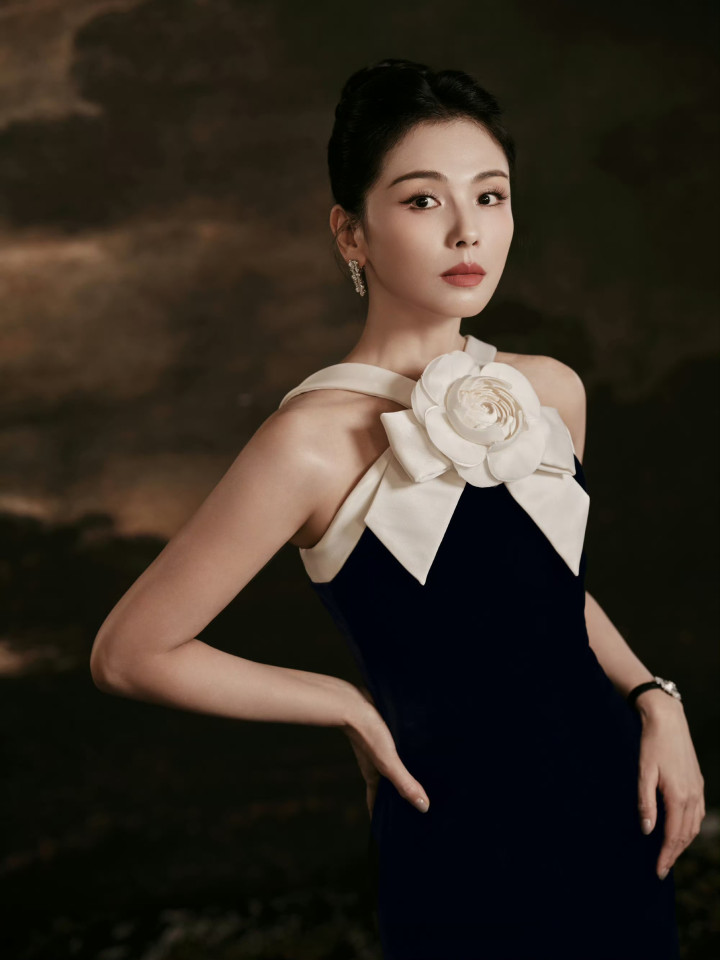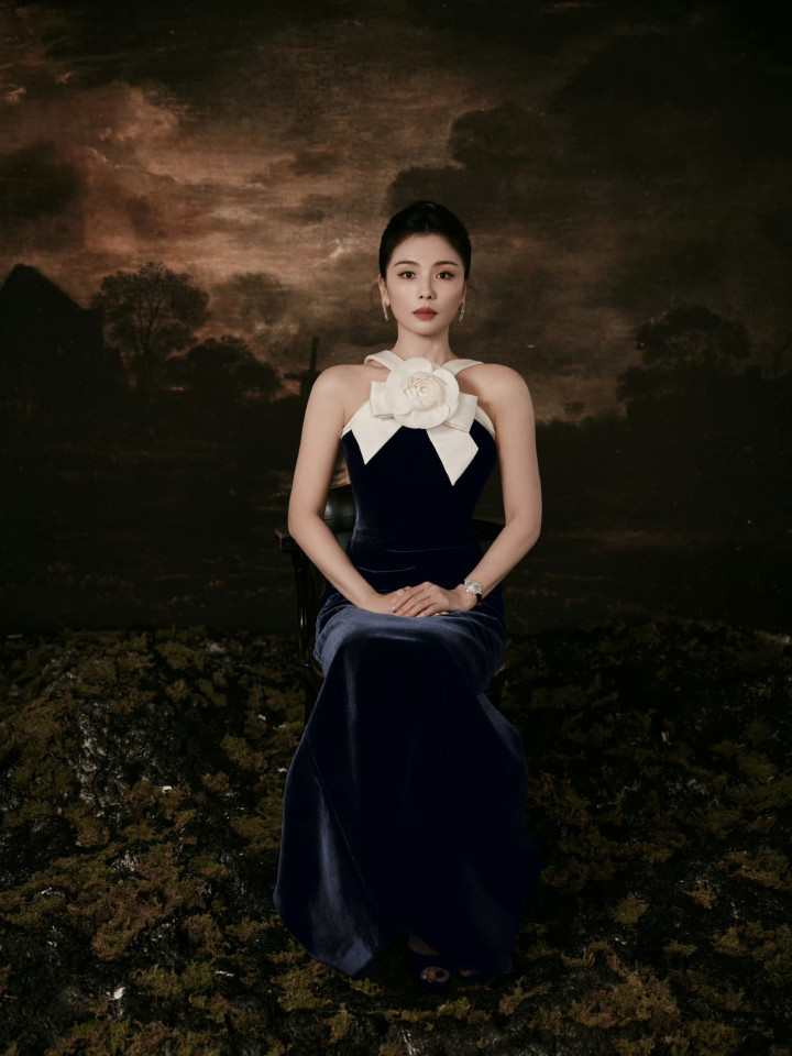 当镜头对准那袭藏青丝绒长裙时,刘涛颈间的白茶花正随光影舒展——不是柔若无骨的娇弱,是缎面与丝绒碰撞出的「刚柔并济」:花瓣的褶皱裹着冷调的光泽,像她的美,从不是单一的「甜」或「盐」,而是成熟女性在岁月里酿出的「活色生香」。