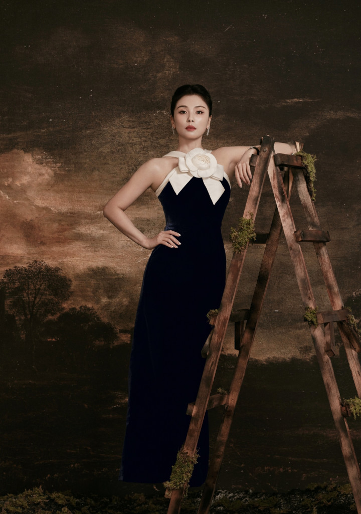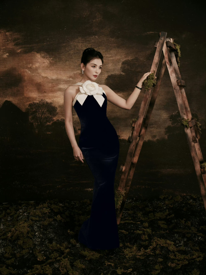 很多人说刘涛的美「不过时」,其实是她从不在「少女感」里打转。藏青裙的丝绒是岁月的肌理,白茶花是阅历的留白,她把30+女性的「成熟」,酿成了「不费力的贵气」:不是堆砌奢侈品的精致,是挽起发髻时露出的耳坠光泽,是搭在木梯上的指尖弧度——连背景里的苔藓与旧木,都成了她的「陪衬」,衬出一种「在烟火里站成风景」的舒展。