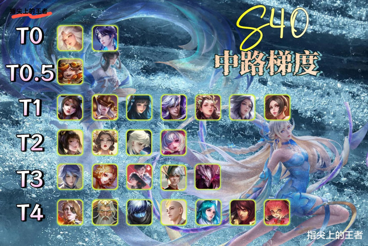 T1:貂蝉、女娲、西施、高渐离、杨玉环、甄姬、不知火舞