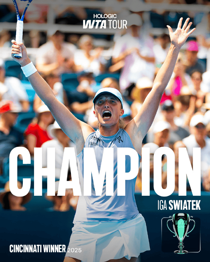 虎扑08月19日讯WTA1000辛辛那提站女单决赛,3号种子斯瓦泰克7-5、6-4战胜7号种子保利尼,首夺赛会冠军和生涯第11座1000赛冠军。