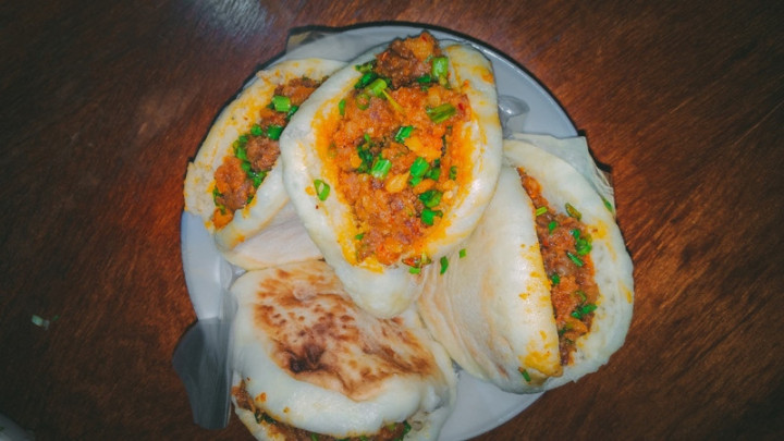 • 豆腐脑+咔饼:书院街“高记豆腐脑”8元/碗,加酥肉和脆哨,配3元牛肉咔饼,麻辣鲜香,咱仨分着吃,人均10元撑到扶墙!