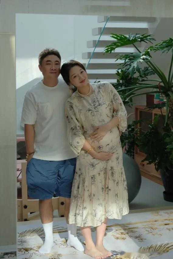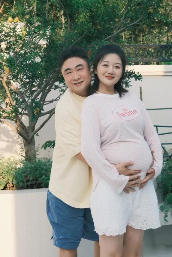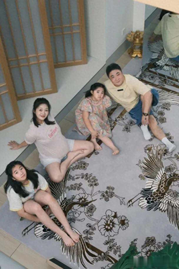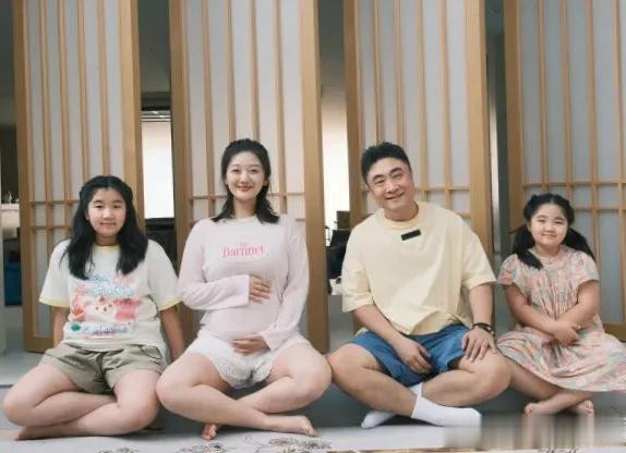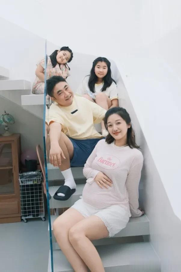 乔杉晒全家福官宣三胎, 父女三人共用一张脸, 妻子挺孕肚仍貌美如花