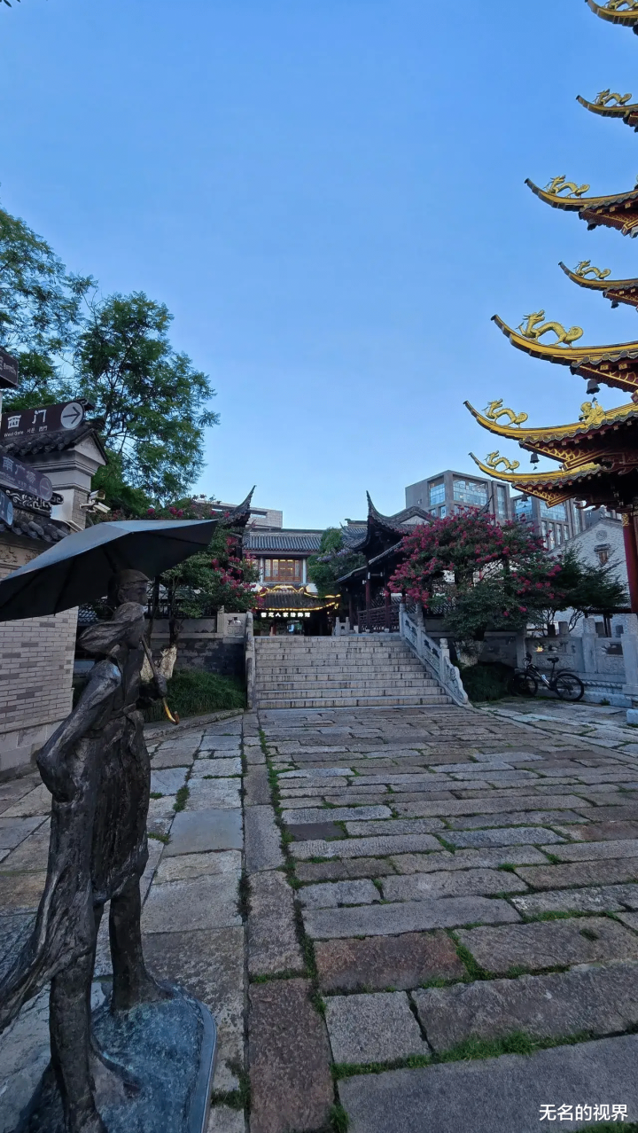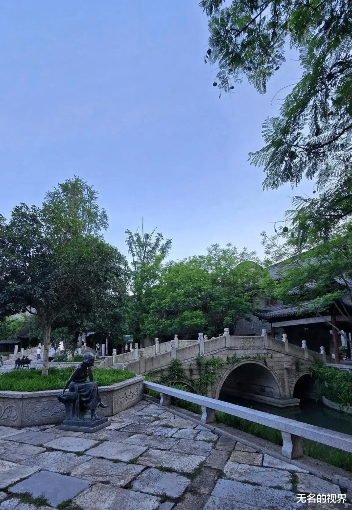 这里是根据清明上河图为蓝本进行仿古打造而成,内部挖掘了好几条人工河道,上面也架起了不少拱形石材桥梁,有一种小桥流水的感觉,大街用石材砖铺设,周围有各种各样的石雕像,融合了不少地方古城小镇建筑风格,比如:川西、徽派和苏式风格等建筑,真实还原了江南水乡的风貌。