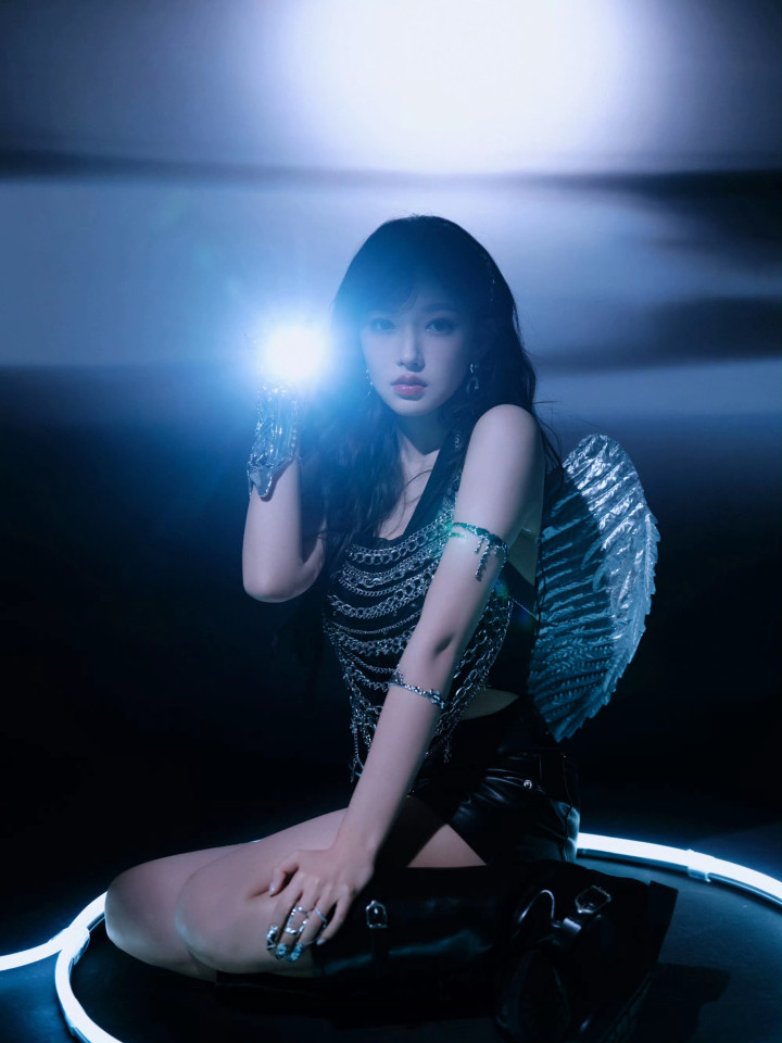 金属臂饰、夸张手饰如点睛之笔,为程潇注入率性气场,与霓虹管线背景交织出未来感。每一个姿态都透着自信不羁,酷美张扬间,将“潇洒”二字诠释得淋漓尽致,尽显独一份的魅力锋芒。