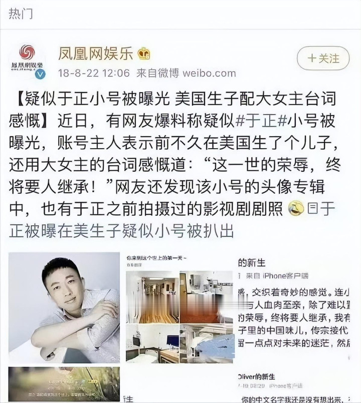 小号里说于正刚在外国生了孩子,还写了句:“这一世的荣辱,终将要人继承”,这话一听就像是当了爹的人会说的。