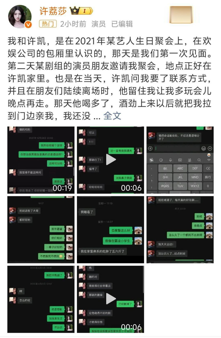 许荔莎自称是男演员许凯的前女友,还详细说过俩人怎么认识的 。