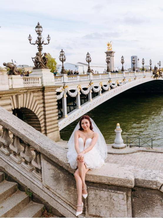 近日朱凯婷在其社交平台上,连发三组照片,与网民分享了,她与飞机师丈夫林德勤,远赴法国巴黎拍摄的婚纱照。